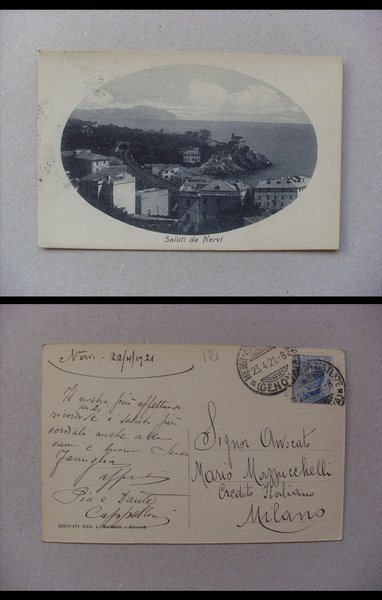 Cartolina Saluti da NERVI (Genova) 1921. Ed.Barberis