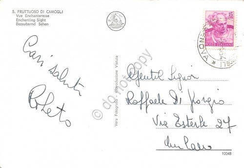 Cartolina San Fruttuoso di Camogli panorama baia barche 1964 (Genova) | Cartoline |