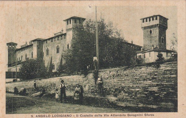 Cartolina Sant'Angelo Lodigiano (Lodi) - Il Castello dalla Via Attendolo Bolognini Sforza