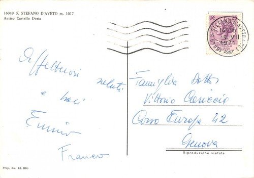 Cartolina Santo Stefano d'Aveto Castello Doria 1971