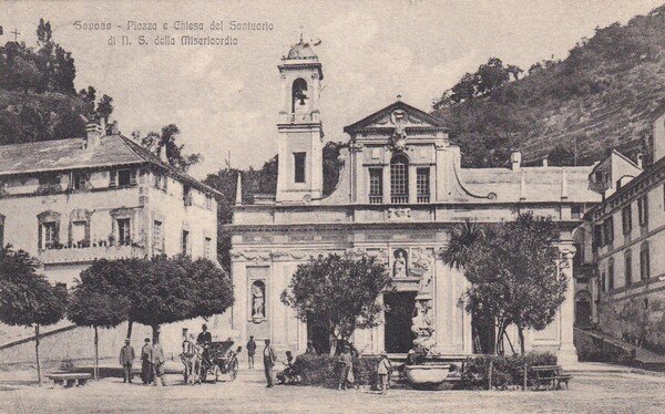 Cartolina Savona - Piazza e Chiesa del Santuario di N.S. della Misericordia. 1920