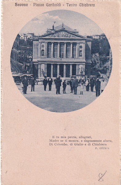 Cartolina SAVONA - Piazza Garibaldi - Teatro Chiabrera. 1920