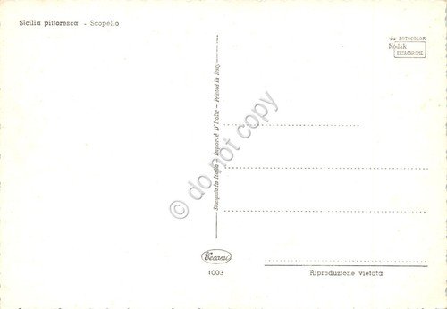 Cartolina Scopello vista dall'alto case faraglioni