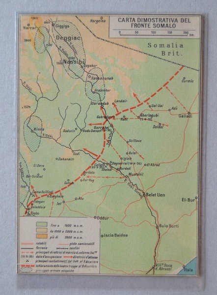 Cartolina Serie Africa Orientale N.14 - Carta dimostrativa del fronte somalo. Ed.S.A. Il Mondo Geografico - Milano