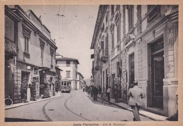 Cartolina Sesto Fiorentino (Firenze) Via A. Gramsci (con tram).