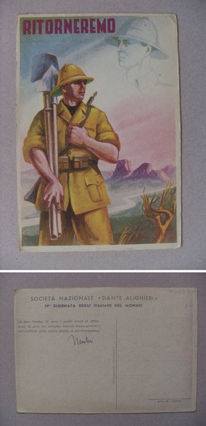 Cartolina "Società Nazionale DANTE ALIGHIERI - IV°Giornata degli Italiani nel Mondo" (Mussolini) Anni'30