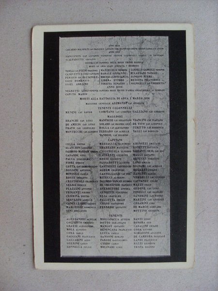 Cartolina Stele commemorativa ai caduti "Morti 1894 - 1895 - 1896. Amba Alagi Africa. Battaglia di Adua 1896"