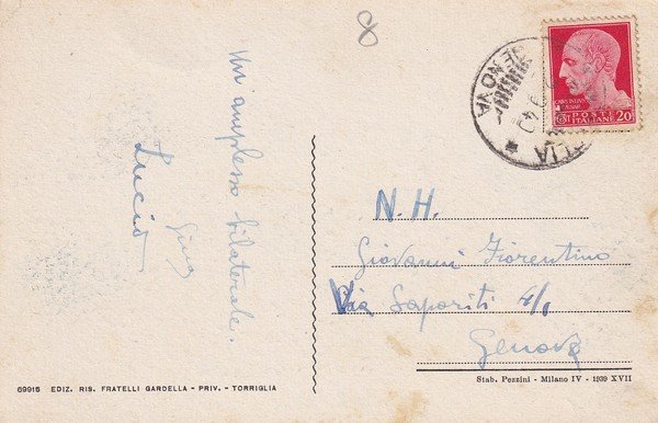 Cartolina Torriglia (Genova) - Villa Conte Ottone. 1940