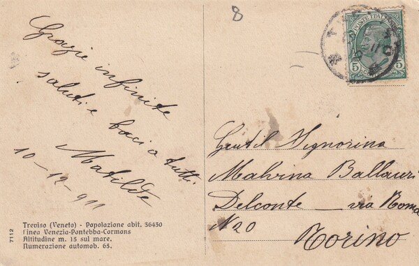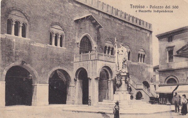 Cartolina TREVISO - Palazzo del 300 e Piazzetta Indipendenza. 1911