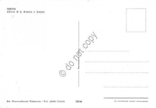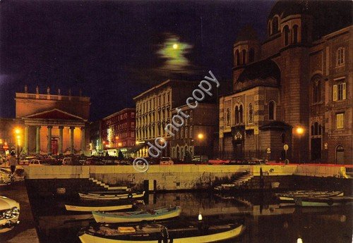 Cartolina Trieste Chiesa S. Antonio e canale barche notturno