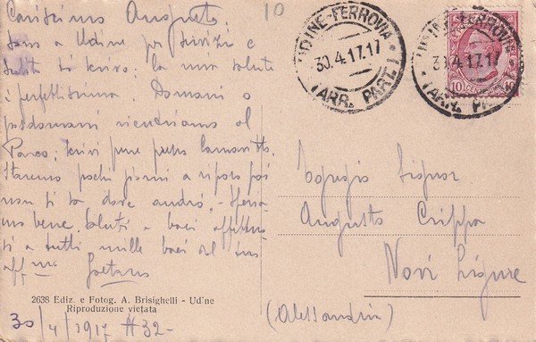 Cartolina UDINE - Piazza Vittorio Emanuele e Municipio. 1917