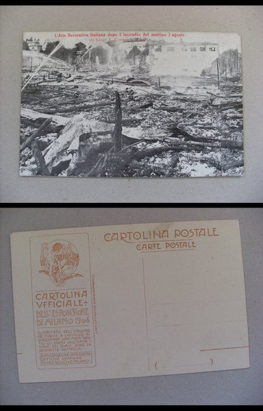 Cartolina Ufficiale dell´Esposizione di Milano 1906 - L´Arte Decorativa Italiana dopo l´incendio del mattino 3 agosto.