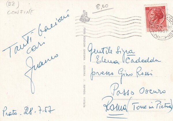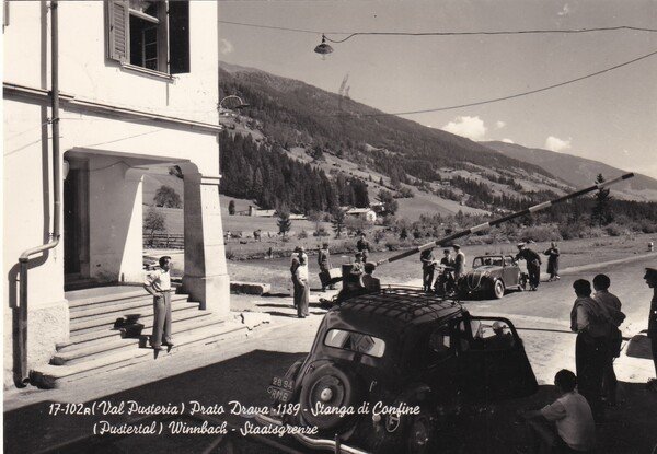 Cartolina (Val Pusteria) Prato Drava - Stanga di confine. 1957