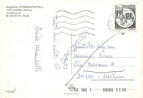 Cartolina Varazze Soggiorno Fatebenefratelli statua 1993 (Savona)