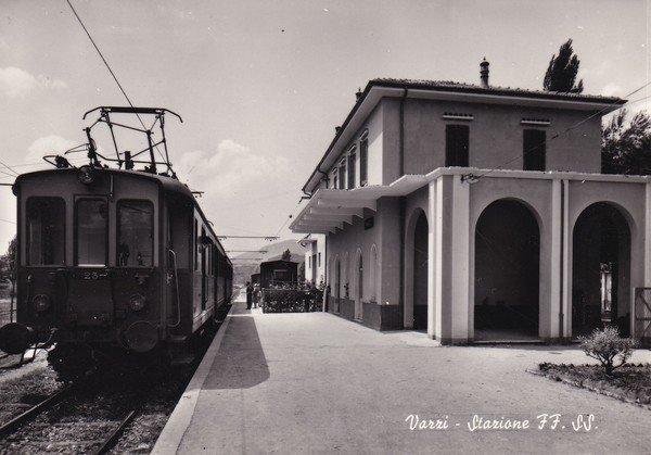 Cartolina Varzi (Pavia) - Stazione FF. SS. (locomotiva, treno)