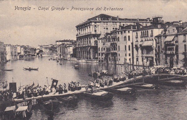 Cartolina Venezia - Canal Grande - Processione del Redentore.