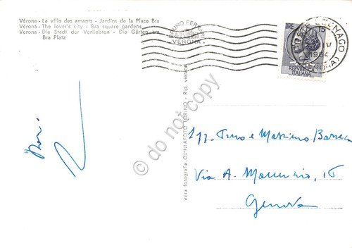 Cartolina Verona Giardini Piazza Bra Fontana notturno 1964