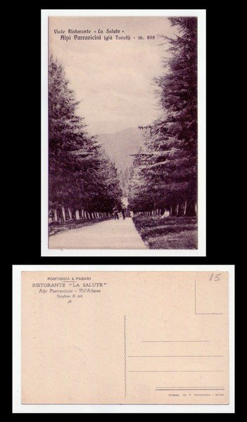 Cartolina Viale Ristorante "La Salute". Alpi Parravicini (già Turati). 1915 circa
