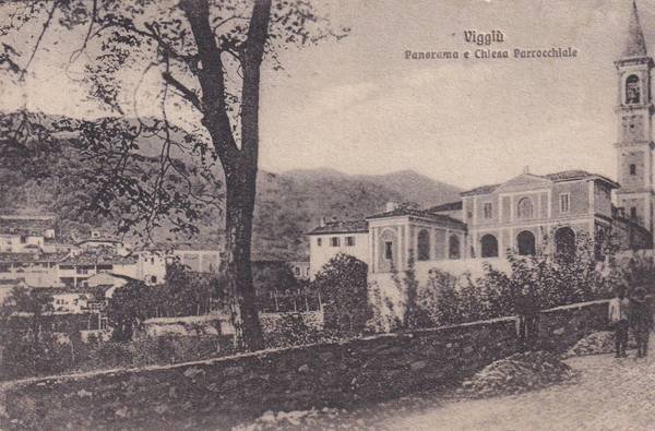 Cartolina Viggiù' (Varese). Panorama e Chiesa parrocchiale. 1918