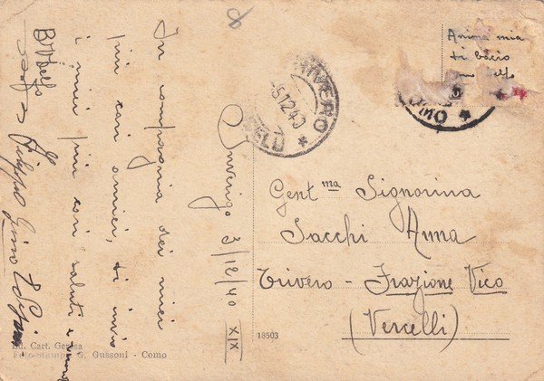 Cartolina Villa Romanò con veduta della Rotonda d'Inverigo (Como). 1940