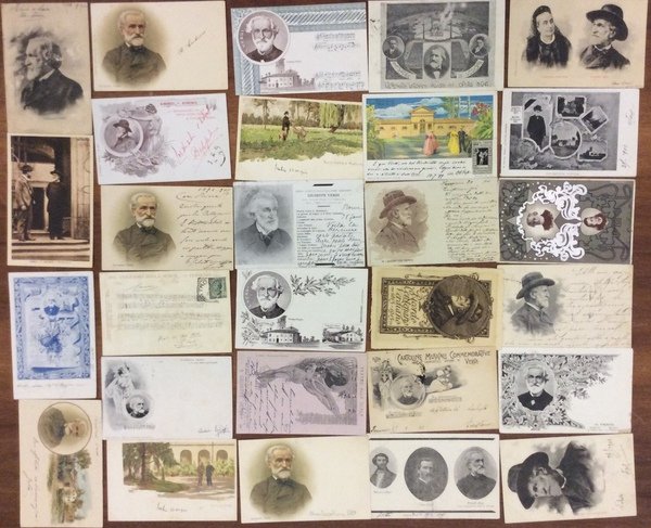 Offriamo una raccolta composta da 28 cartoline (cm. 9x14) a colori, in bianco e nero e in tinta, realizzate con le più svariate tecniche incisorie a cavallo tra l'800 e il 900, delle quali 22 viaggiate. Ben conservata.