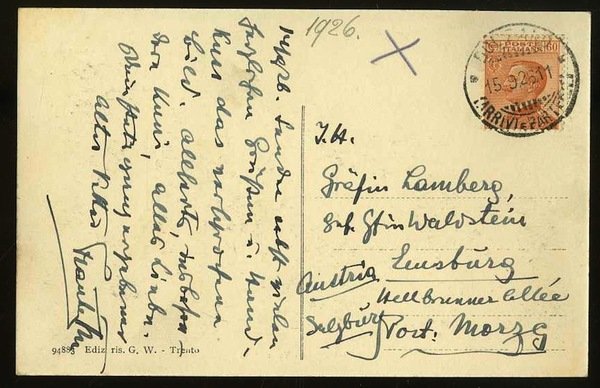 Cartolina fotografica in bianco e nero di misure 14x9 cm. Condizioni : USATO - Stato : Buono, ordinari segni d'uso e del tempo. Altre note : Viaggiata con francobollo e timbro di annullo di Bolzano.