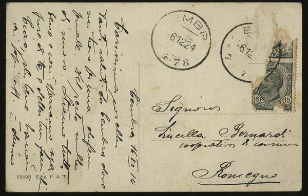 Cartolina in bianco e nero di misure 13,5x8,7 cm. Condizioni : USATO - Stato : Buono, ordinari segni d'uso e del tempo. Altre note : Viaggiata con timbro e francobollo.