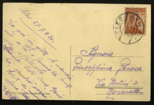 Cartolina fotografica in bianco e nero di misure 14x9 cm. Condizioni : USATO - Stato : Buono, ordinari segni d'uso e del tempo. Altre note : Viaggiata con francobollo e timbro di annullo di Cles.