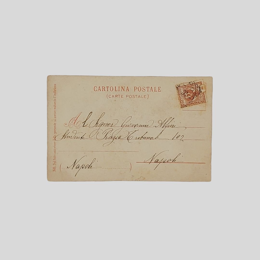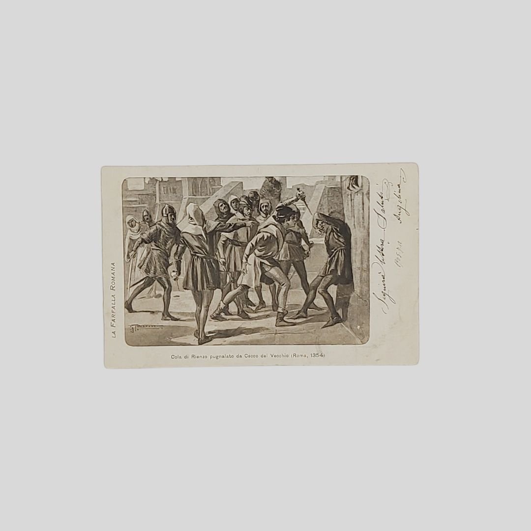Cartolina d’epoca. Undivided back. Viaggiata, invio del 12/7/1905. La Farfalla Romana, s.d. (primi ‘900), cm 14×9. Francobollo, timbro. Tracce d’uso.