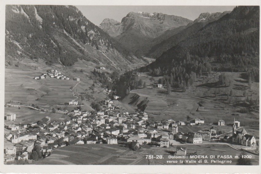 Dolomiti: Moena di Fassa m. 1200 verso la Valle di S. Pellegrino.