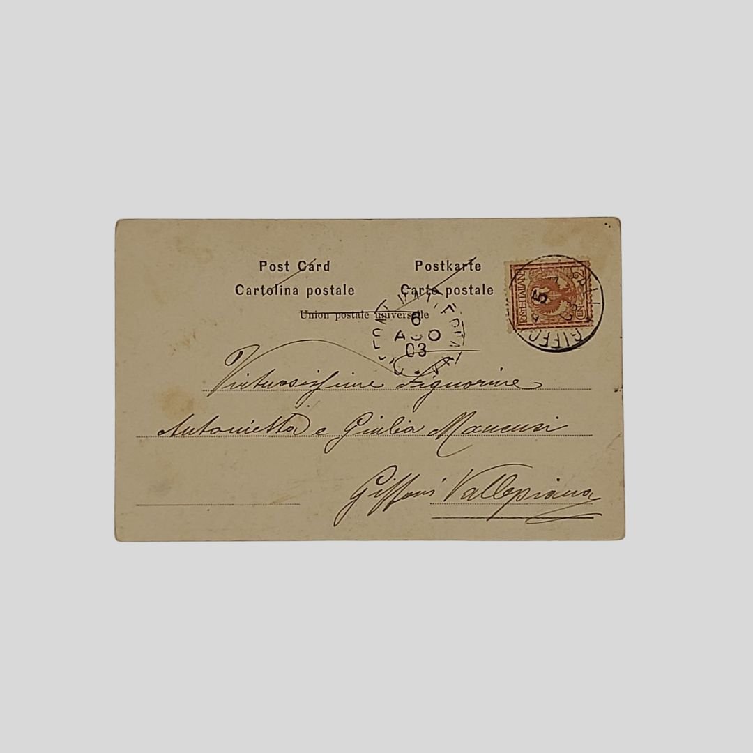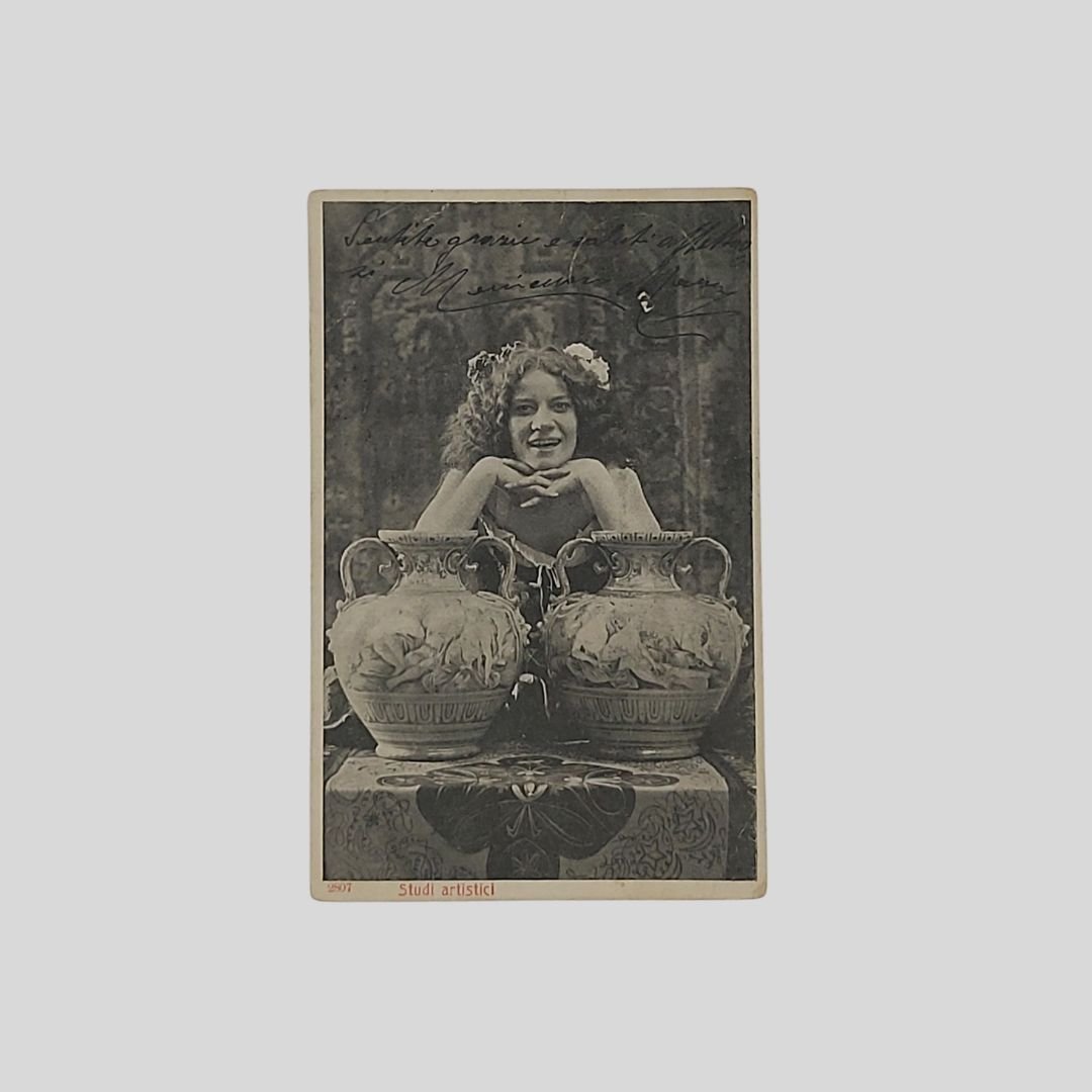 Cartolina fotografica d’epoca. Undivided back. Viaggiata, s.d. (primi ‘900), cm 9×14. Francobollo, timbro. In buone condizioni. Serie Studi artistici N. 2807