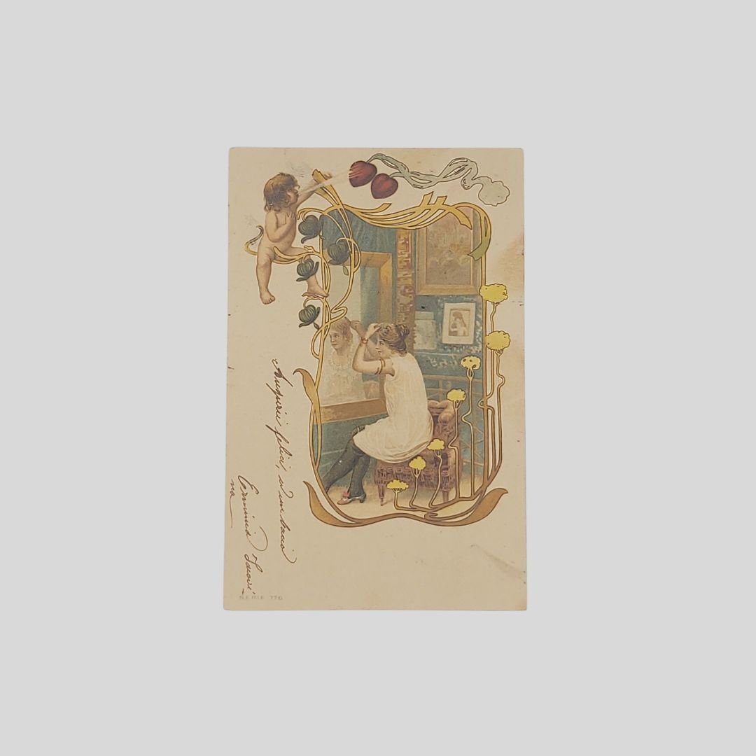 Cartolina d’epoca. Undivided back. Viaggiata, s.d. (primi ‘900), cm 9×14. Francobollo, timbri. Tracce d’uso.