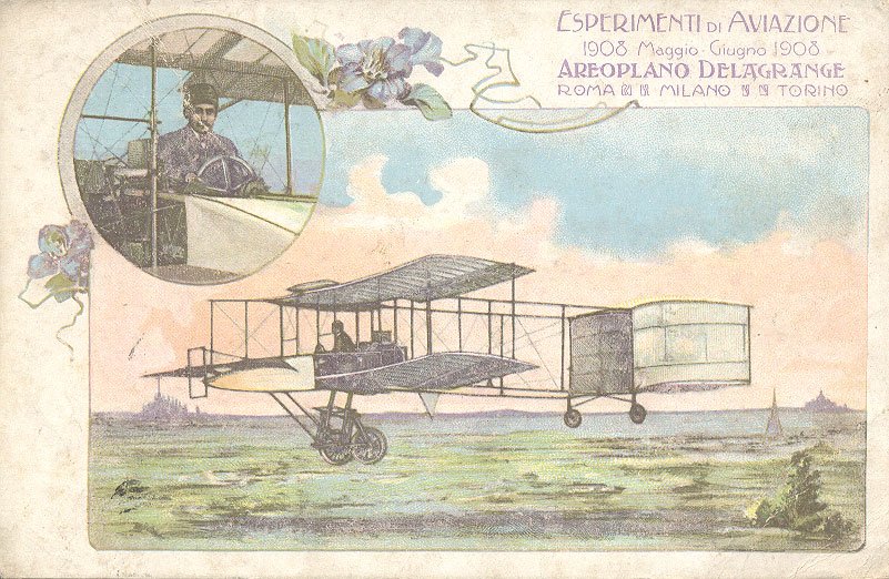 ESPERIMENTI DI AVIAZIONE. MAGGIO GIUGNO 1908. AEROPLANO DELAGRANGE. ROMA - MILANO - TORINO.