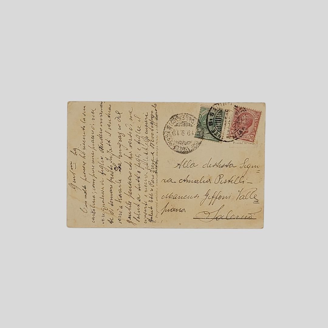 Cartolina d’epoca, Viaggiata, cm 9×14. Francobolli, timbri, postalizzata il 19/9/1919. Tracce d’uso, piegatura all’angolo sinistro.