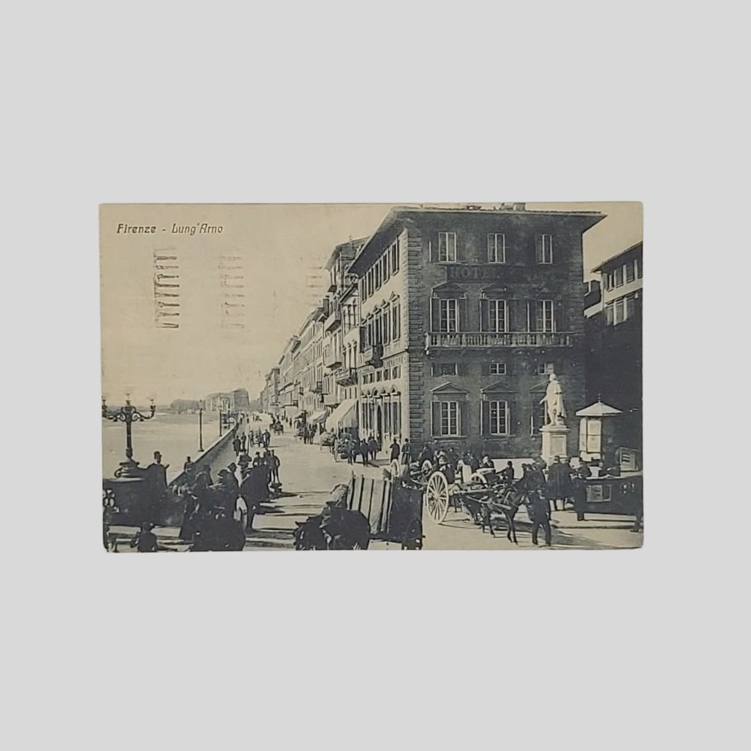 cm 13,5x8,7. Cartolina fotografica originale viaggiata, molto animata, in primo piano carretti con cavalli, timbri, francobollo, postalizzata il 7/10/1924. Alone del timbro postale al recto, ma in buone condizioni.
