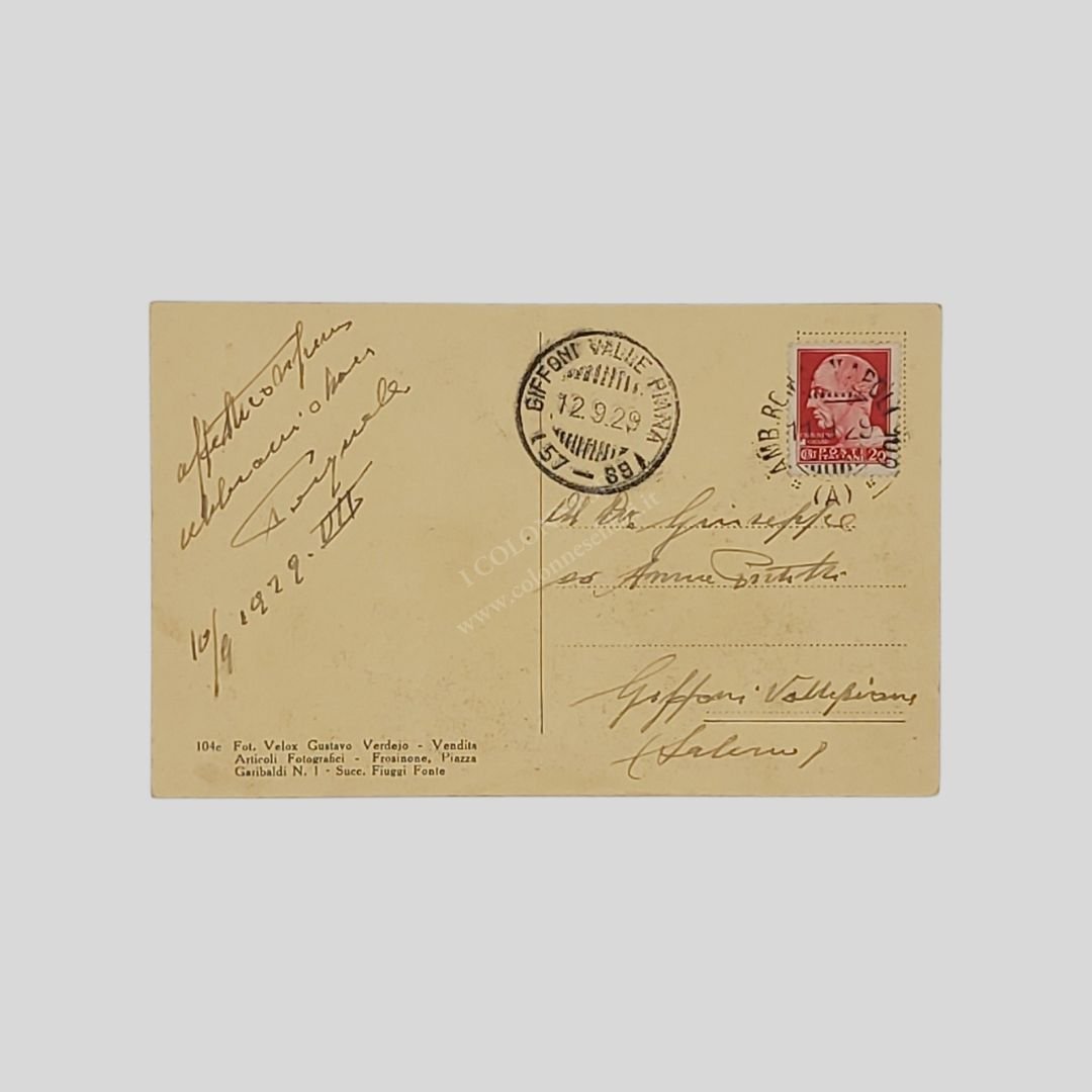 Cartolina originale. Viaggiata, cm 14×9. Frosinone, Fot. Velox Gustavo Verdejo. Francobollo, timbri. 10/9/1929. In buone condizioni.