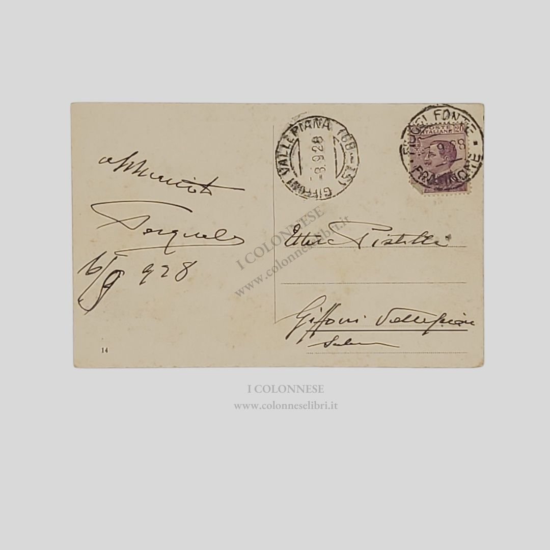 cm 13,5×8,7. Cartolina fotografica originale viaggiata, timbri e francobollo, 6/9/1928. In buone condizioni.