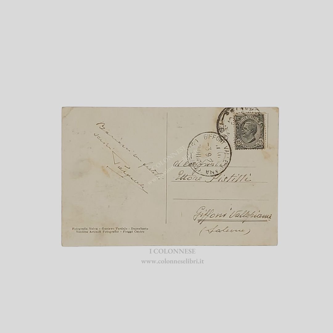 Cartolina fotografica originale. Viaggiata, cm 13,8×8,9. Fotografia Velox – Gustavo Verdejo. Francobollo, timbri, 3/9/1923. Lievi tracce d’uso ai margini.