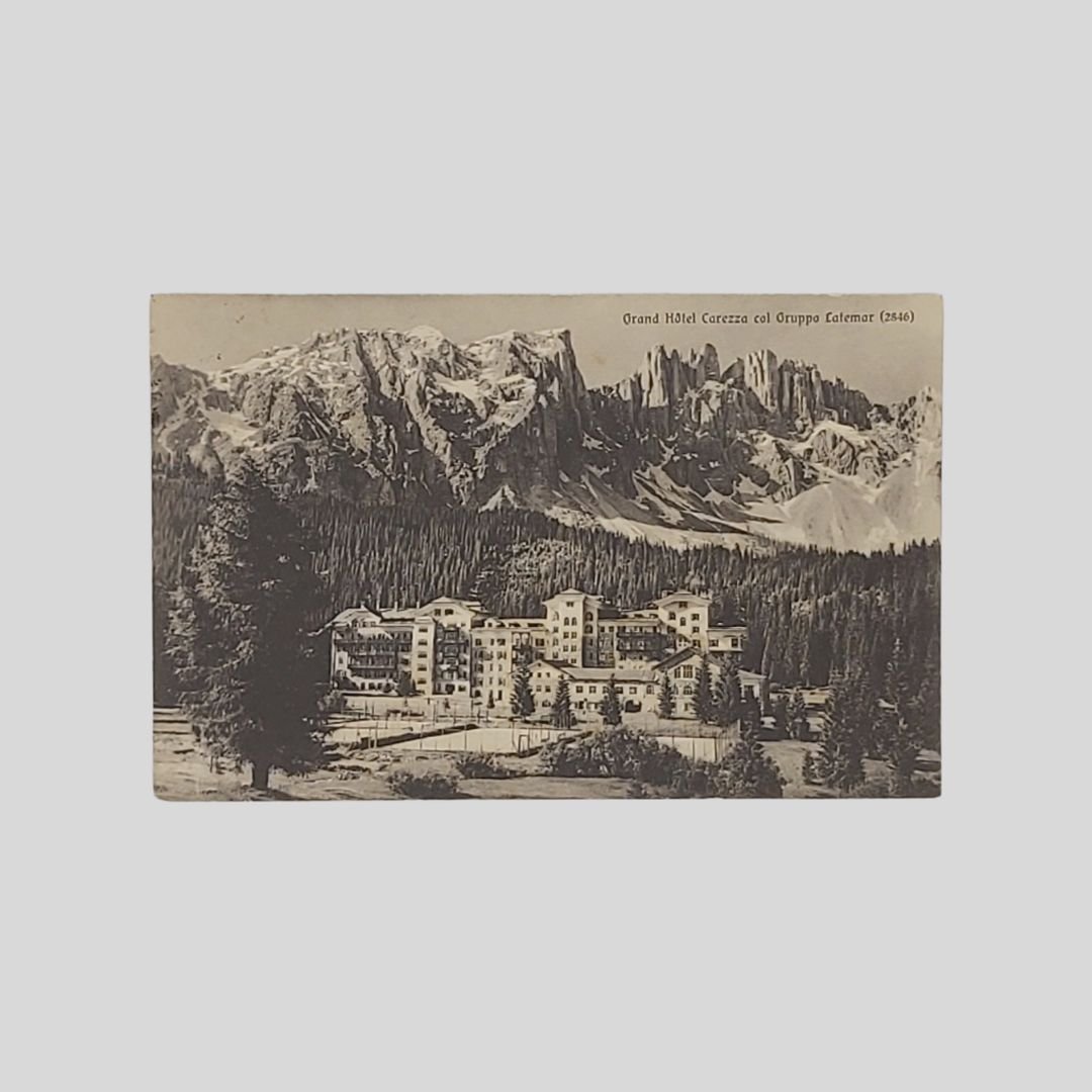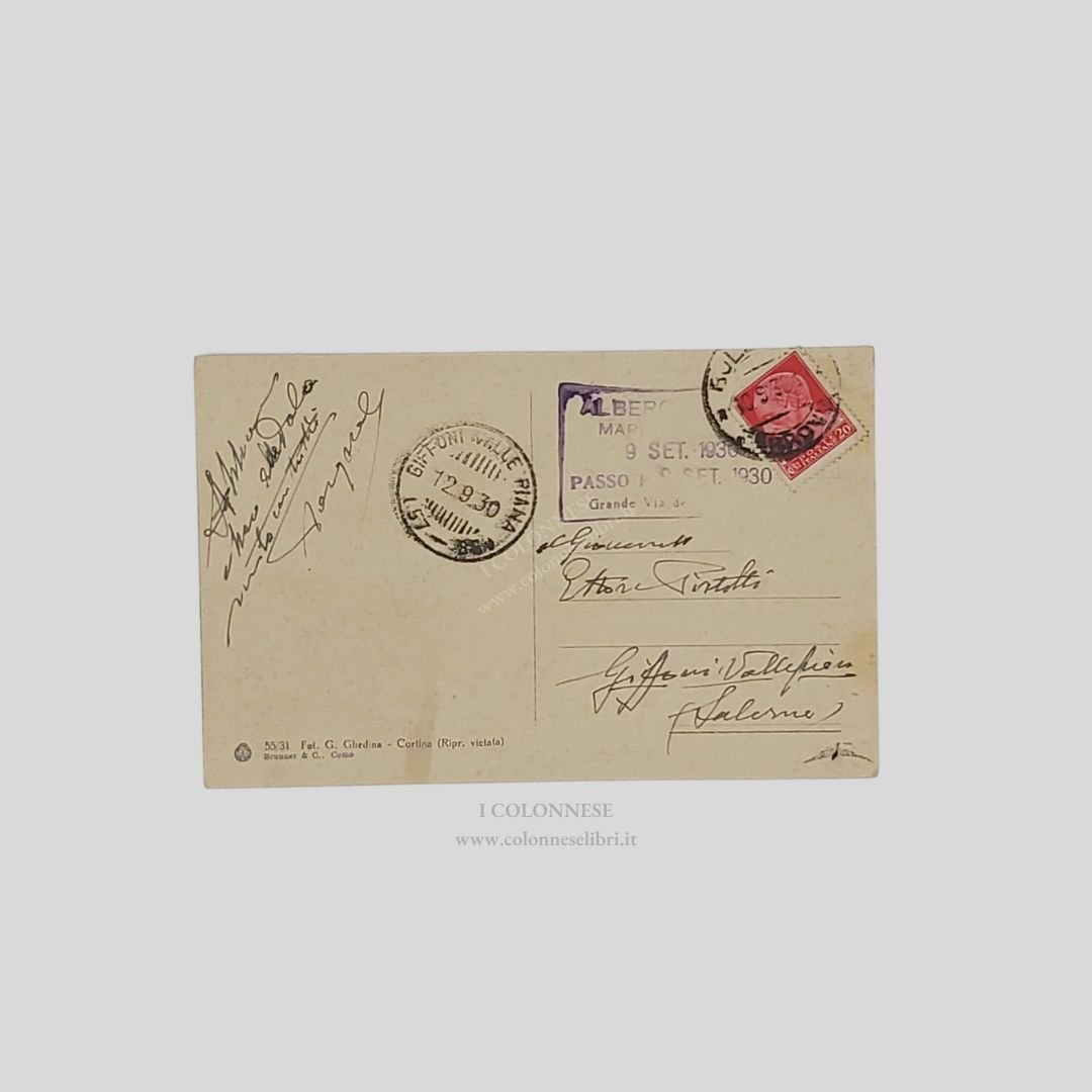 cm 14×9. Cartolina originale fotografica. Viaggiata. Cortina, Fot. G. Ghedina. Francobollo, timbri, (12/9/1930) e timbro dell’Albergo. In buone condizioni.