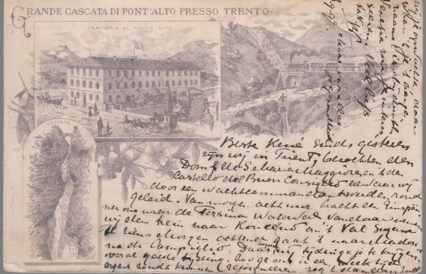 - [CARTOLINA LITOGRAFICA - TRENTO - CASCATA DI PONT'ALTO].