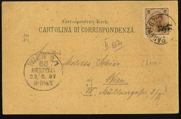 Cartolina litografata a colori di misure 14,2x9,2 cm. Condizioni : USATO - Stato : Buono, ordinari segni d'uso e del tempo. Altre note : Viaggiata con francobollo e timbro di annullo di Paneveggio.
