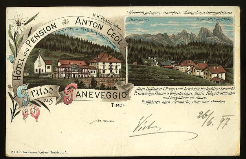 - [CARTOLINA LITOGRAFATA - PANEVEGGIO - VALLE DI FIEMME].