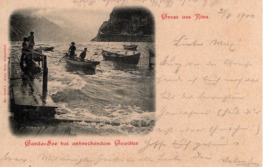 Gruss aus Riva, Garda-See bei anbrechendem Gewitter.