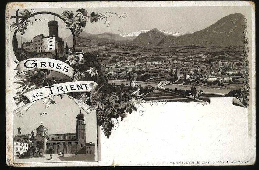 - [CARTOLINA LITOGRAFICA - TRENTO - TRENTINO].