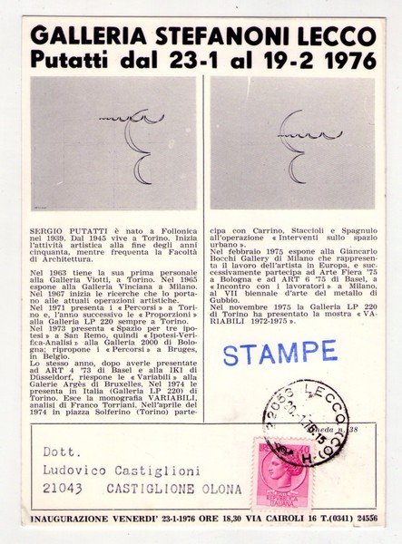 Invito Galleria Stefanoni Lecco. SERGIO PUTATTI 1976