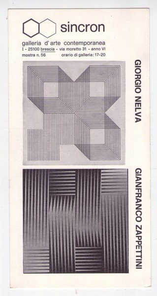 Invito GIORGIO NELVA - GIANFRANCO ZAPPETTINI. 1972. SINCRON Centro Culturale Arte Contemporanea BRESCIA