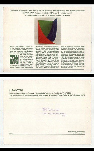 *Invito KATSUMI NAKAI. Galleria Il Salotto - Como. 1973