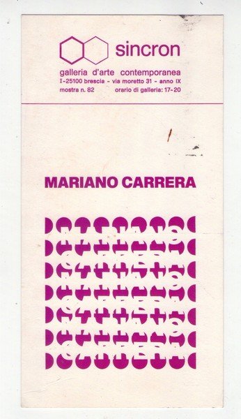 Invito MARIANO CARRERA - 1974. SINCRON Centro Culturale Arte Contemporanea BRESCIA