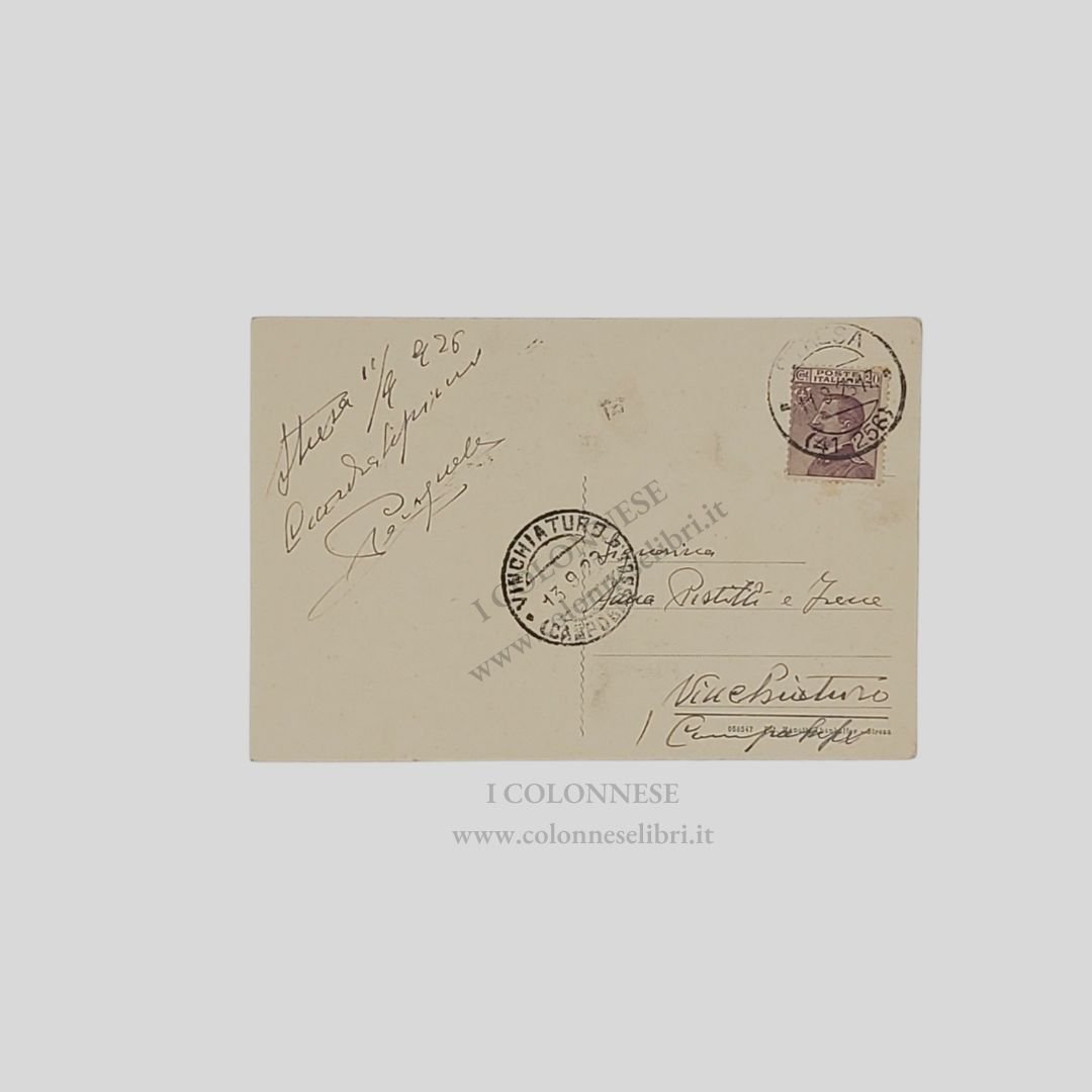 Cartolina fotografica originale virata in seppia. Stresa, Fot. Menotti Thanhoffer, viaggiata, 11/9/1926, cm 14×9, timbri e francobollo. Alone del timbro al recto, ma in buone condizioni.