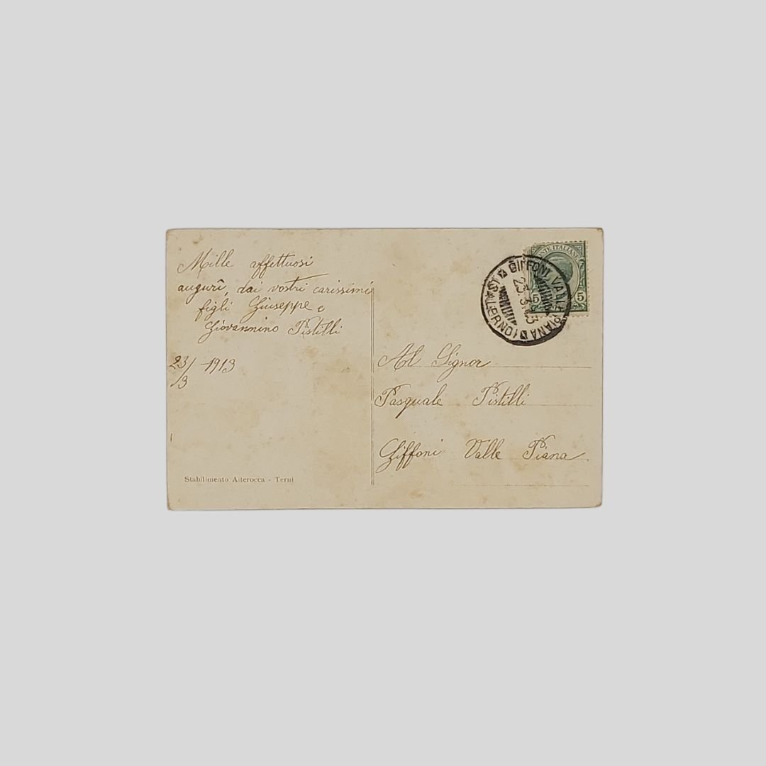cm 14×9. Cartolina d’epoca. Viaggiata, invio del 23/3/1913. Francobollo, timbro. Tracce d’uso al recto-verso.